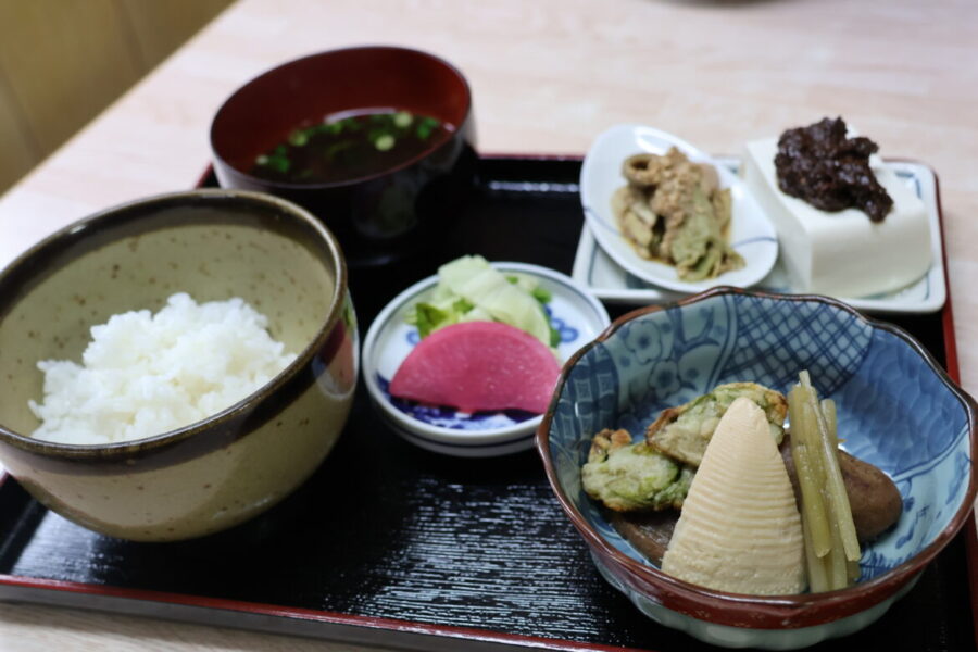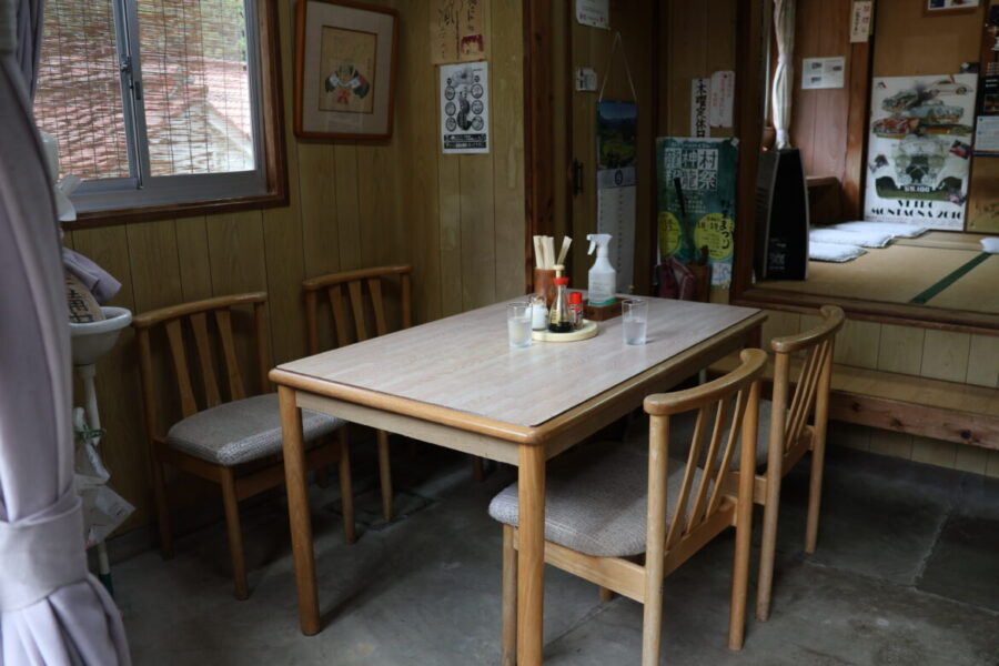 小さな小屋で味わえる天然素材料理。店名の通り民家を改築したお店です。山菜や野菜を使ったお惣菜、天然物のアユやアマゴの塩焼、定食、鹿刺身、めはりずし、うどん他。