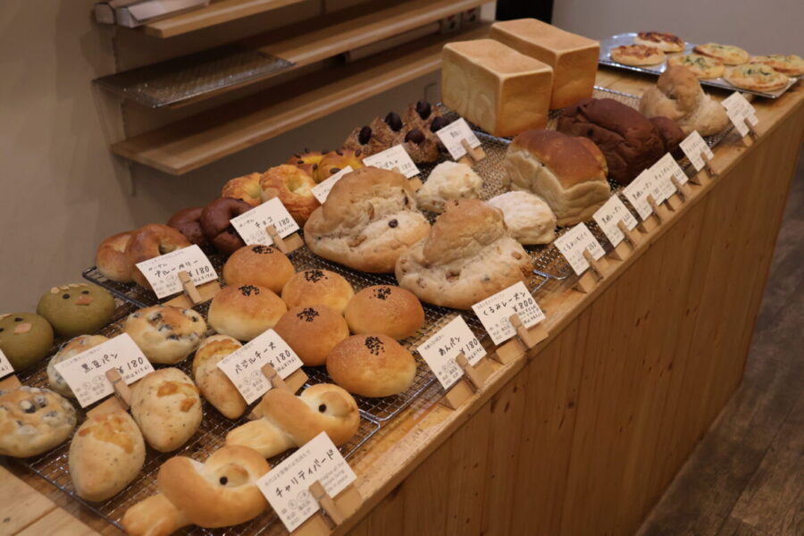 国産小麦を使用し、定番の山型食パン、あんパン、くるみレーズンの他、季節のパンを焼き上げています。